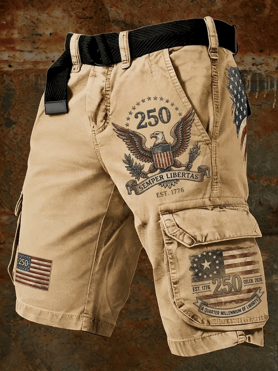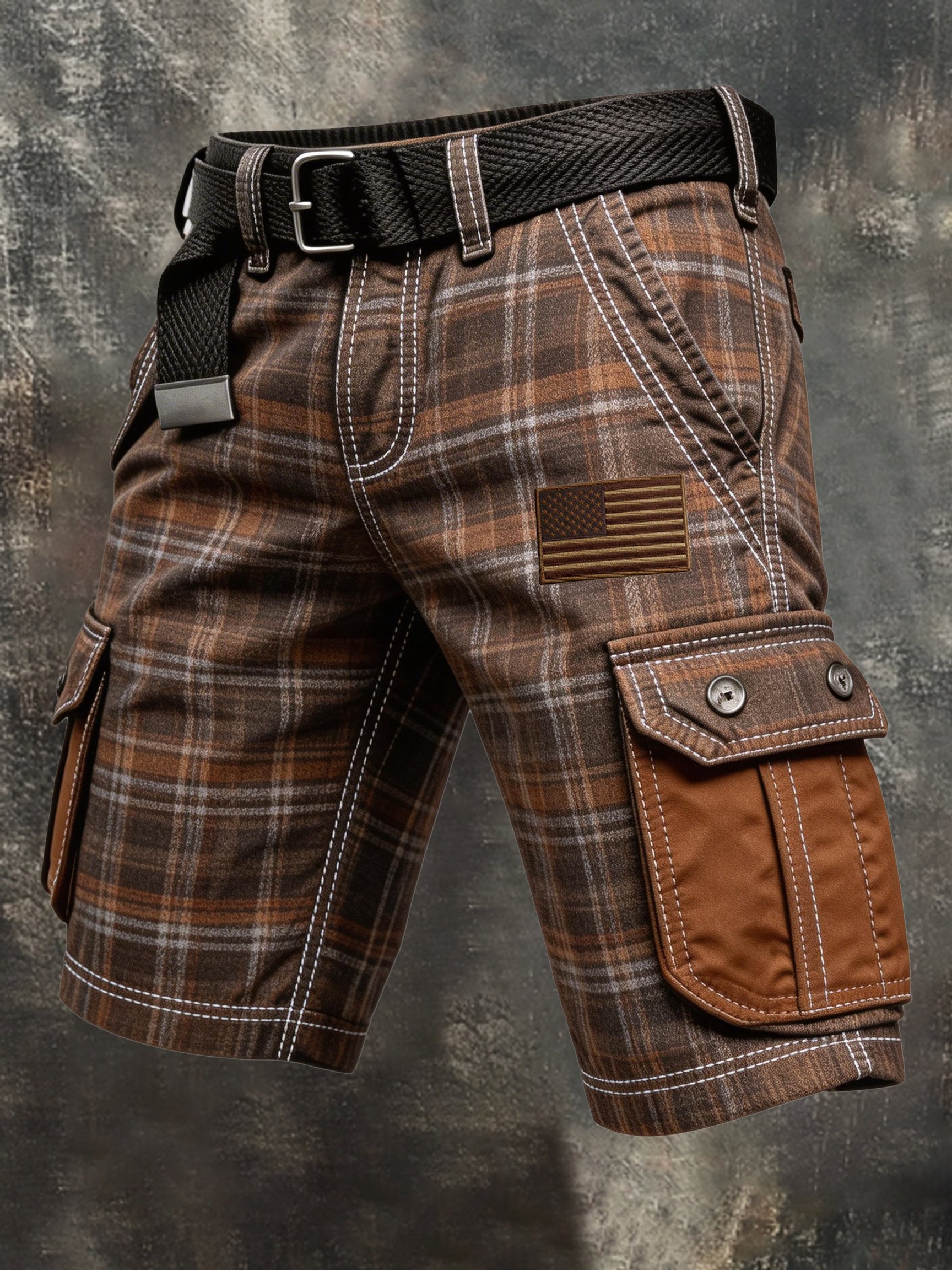 Men's Retro Outdoor Washed & Distressed Multi-Pocket Functional Waffle-Knit Cargo Shorts$49.99 USD$77.98 USD