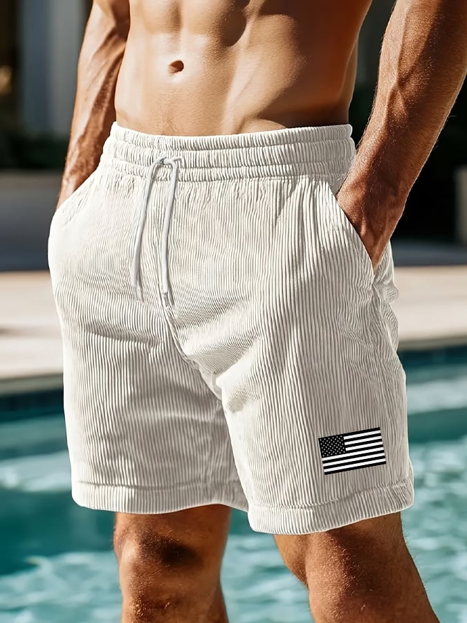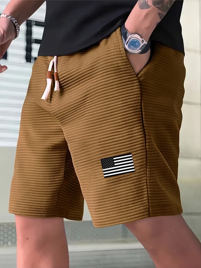 Men's Casual Jacquard Textured Shorts With Embroidered Logo And Elastic Waistband$35.00 USD$70.00 USD