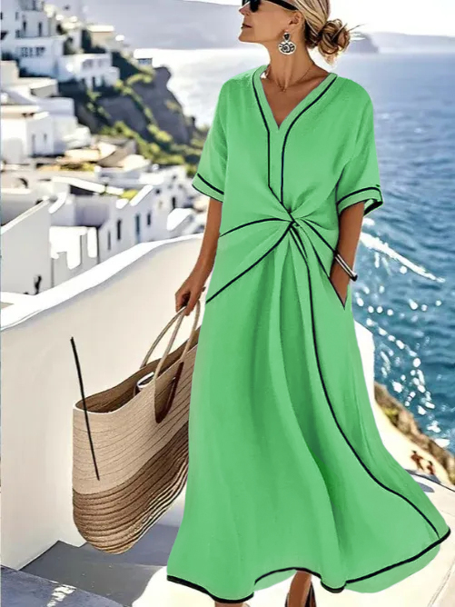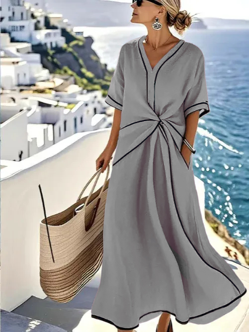 The V Neck Fashion Design Dress is designed for the modern woman who cares about sophistication and style. The elegant Maxi long dress is perfect for any occasion.