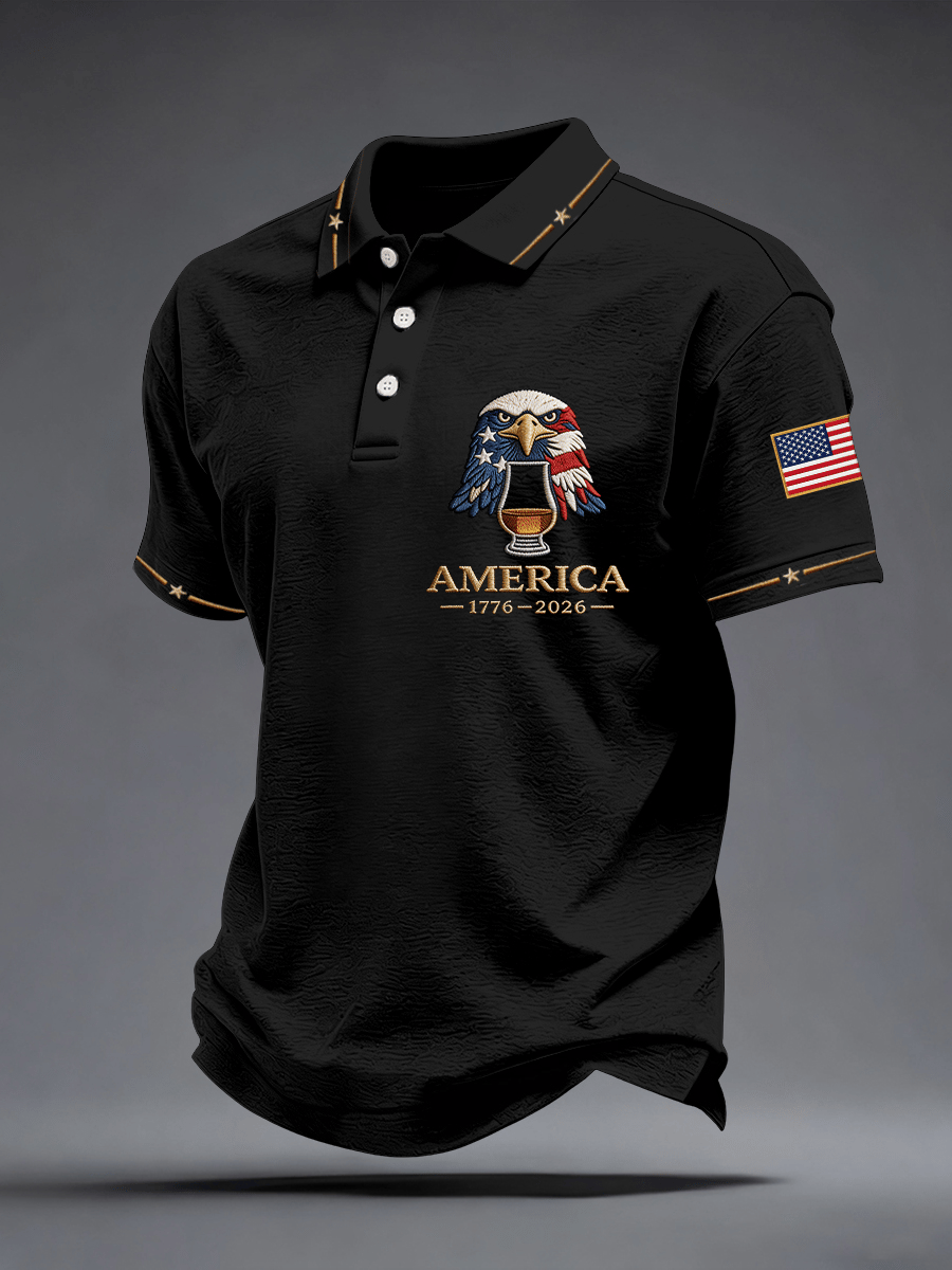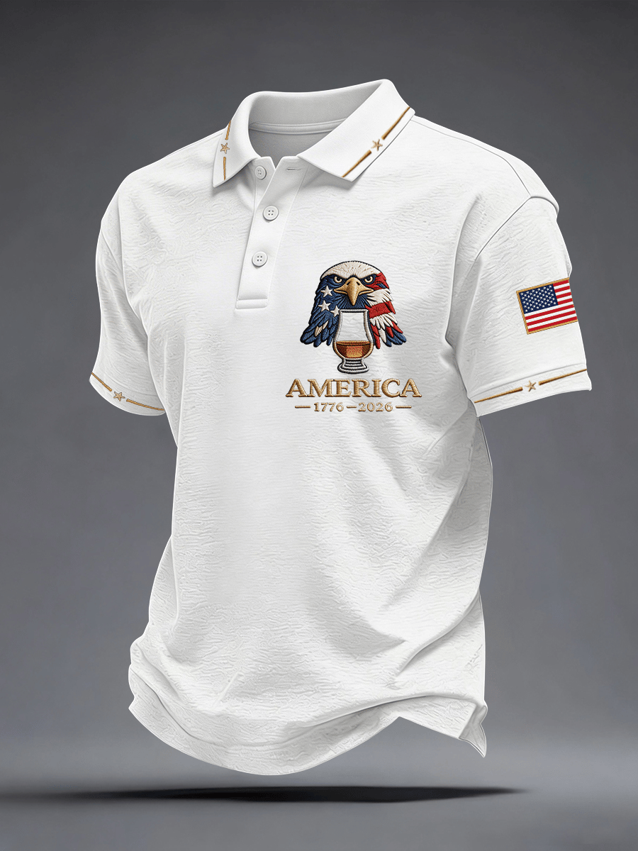 Men's American Spirit Eagle (1776–2026) Print Casual Polo Shirt