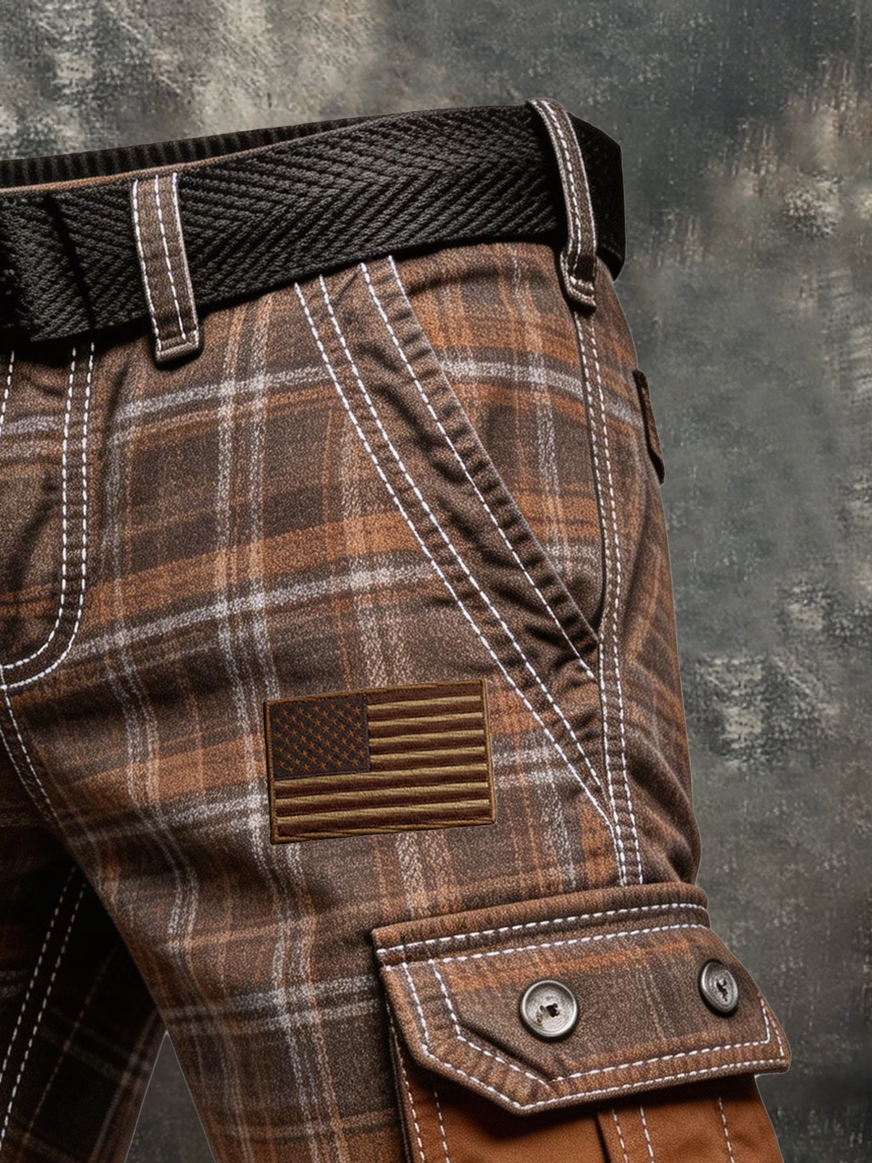 Men's Retro Color-Block Distressed Patriotic Cargo Shorts with Pockets (Belt Not Included)