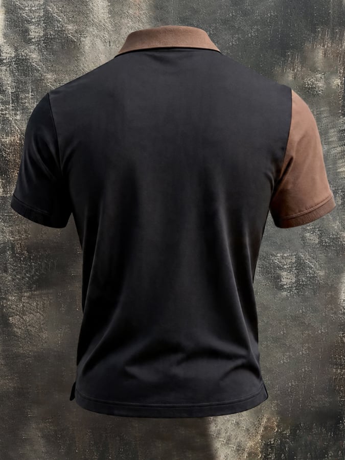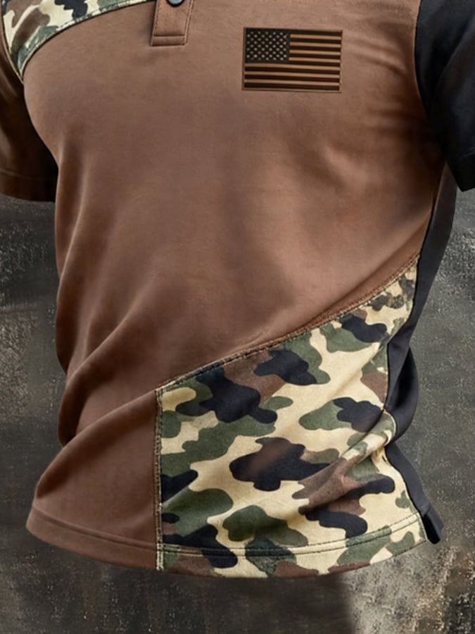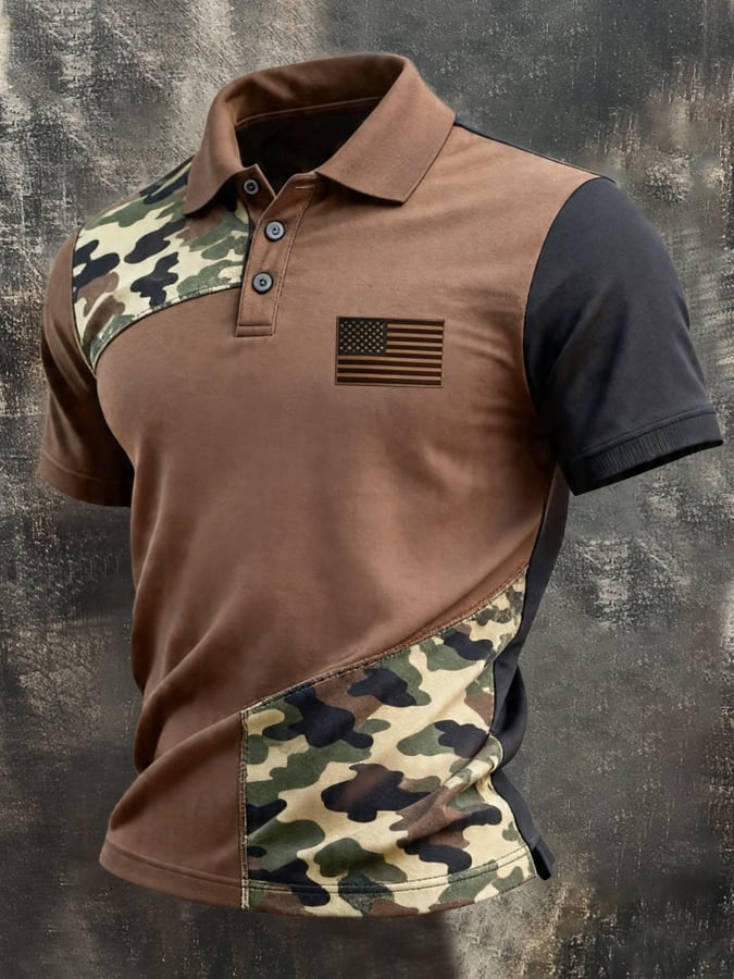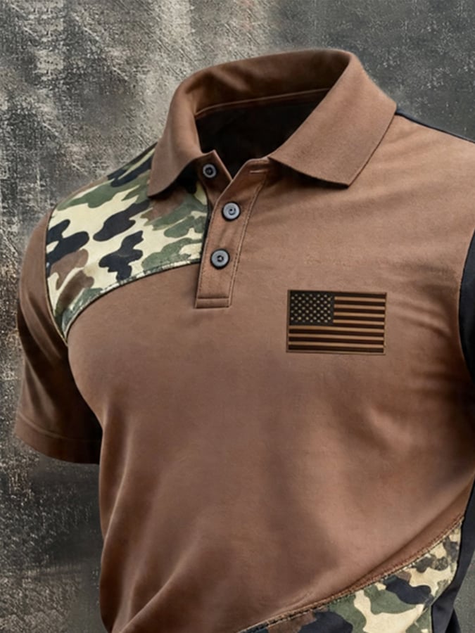 Men's Retro Patriotic Color-Block Short-Sleeve Polo Shirt