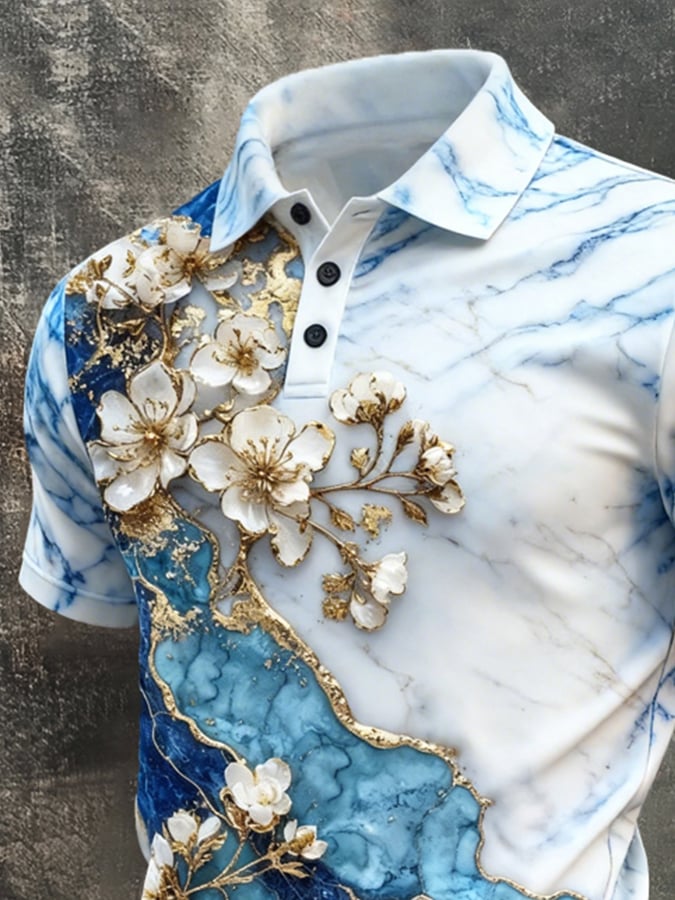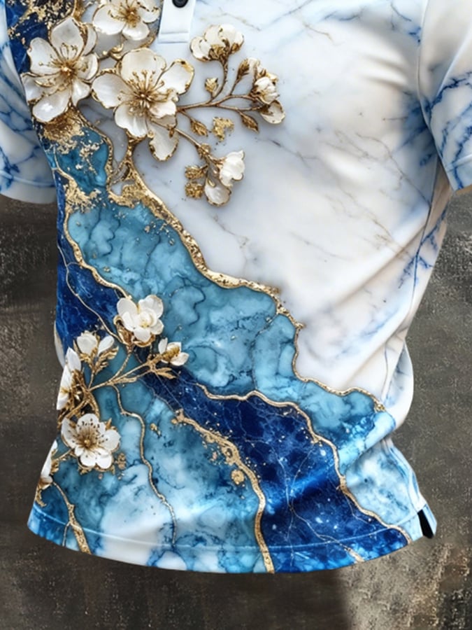 Men's Retro Patriotic Color-Block Short-Sleeve Polo Shirt