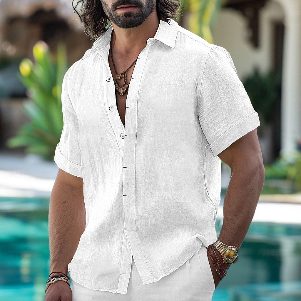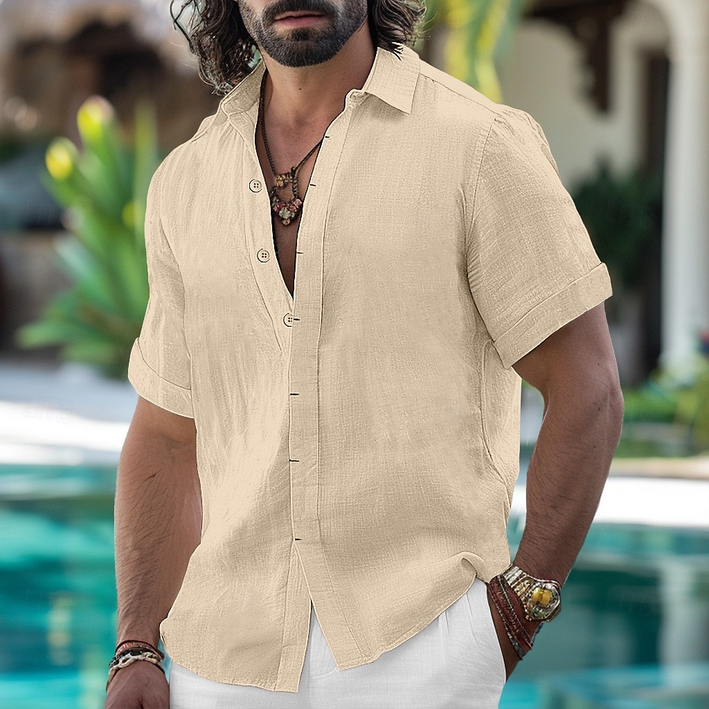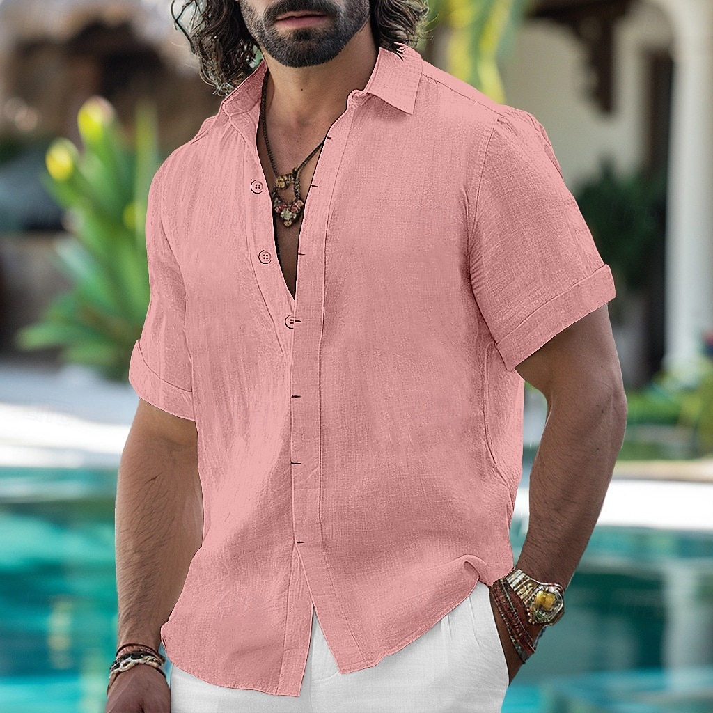 Fabric:Cotton And Linen,Gender:Men's,Tops Type:Shirt,Casual Shirt,Linen Shirt,Button Down Shirt,Beach Shirt,Summer Shirt,Occasion:Hawaiian,Streetwear,Daily,Holiday,Vacation,Style:Fashion,Comfortable,Neckline:Collar,Sleeve Length:Short Sleeve,Look After Me:Wet and Dry Cleaning,Washable,Pattern:Solid Color,Plain,Season:Summer,Function:Breathable,