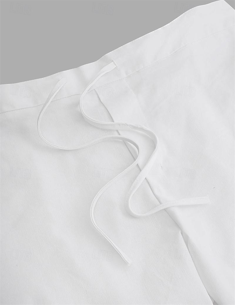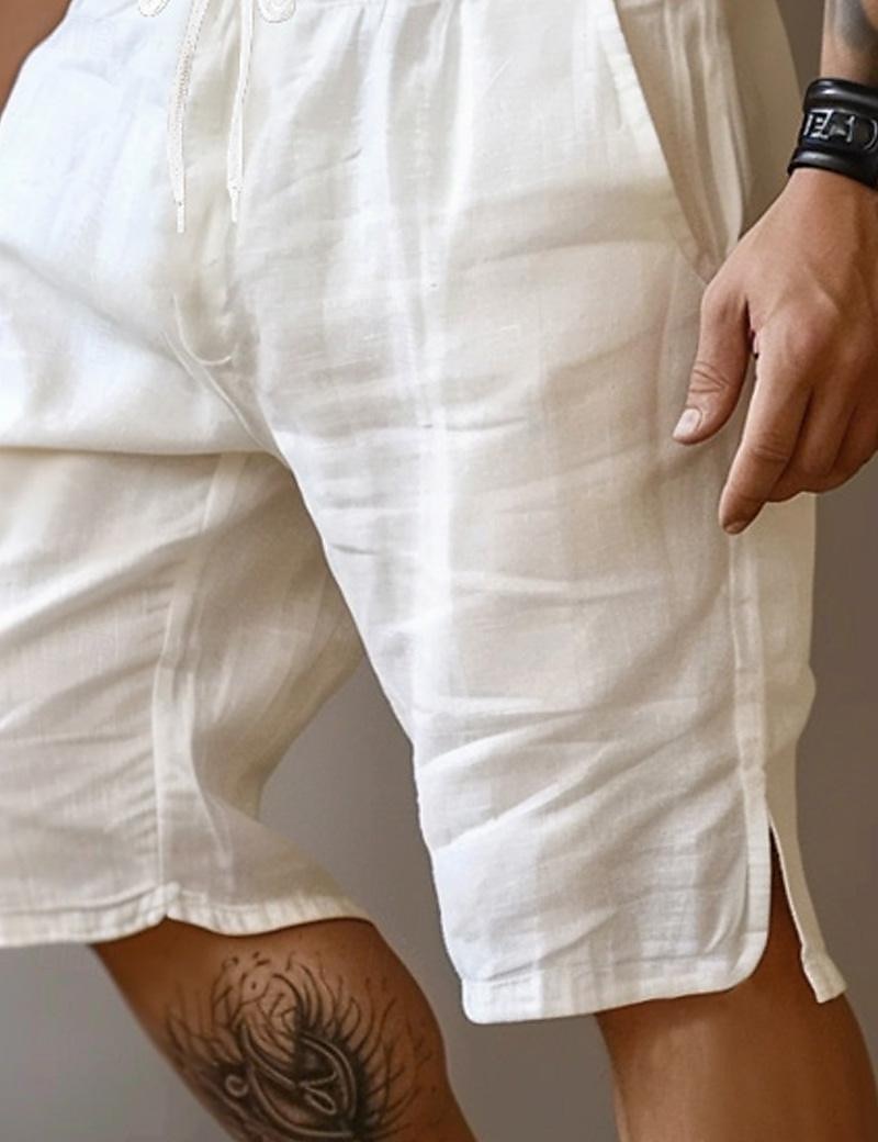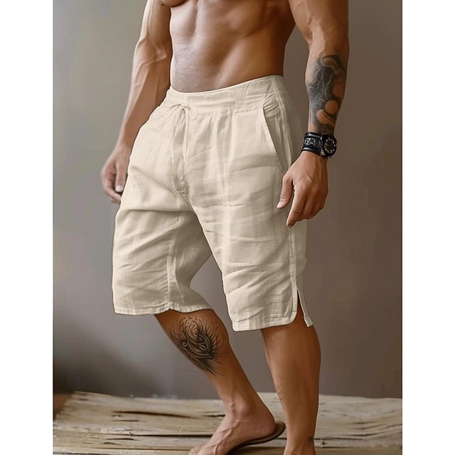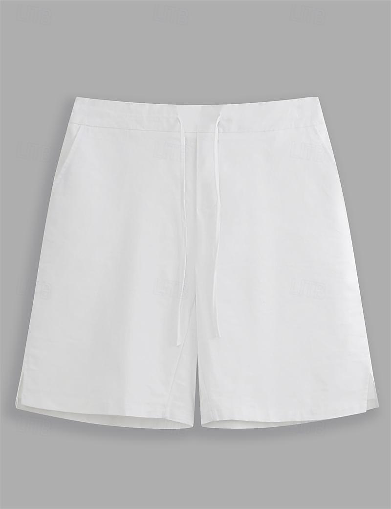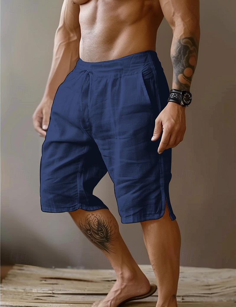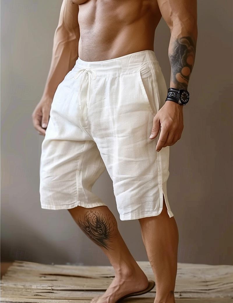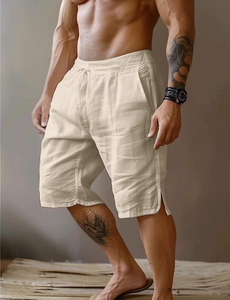 Gender:Men's,Pants Type:Shorts,Summer Shorts,Linen Shorts,Style:Basic,Fashion,Occasion:Vacation,Holiday,Party,Daily,Casual,Outdoor,Streetwear,Fabric:Linen Cotton Blend,Design:Straight Leg,Split,Front Pocket,Waistline:Mid Waist,Pants Length:Knee Length,Function:Comfort,Breathable,Fit Type:Loose Fit,Fly Type:Drawstring,Elasticity,Pattern:Plain,Season:Spring & Summer,