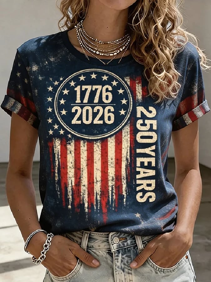 Women's Casual American 250th Anniversary Printed Short-Sleeve T-Shirt