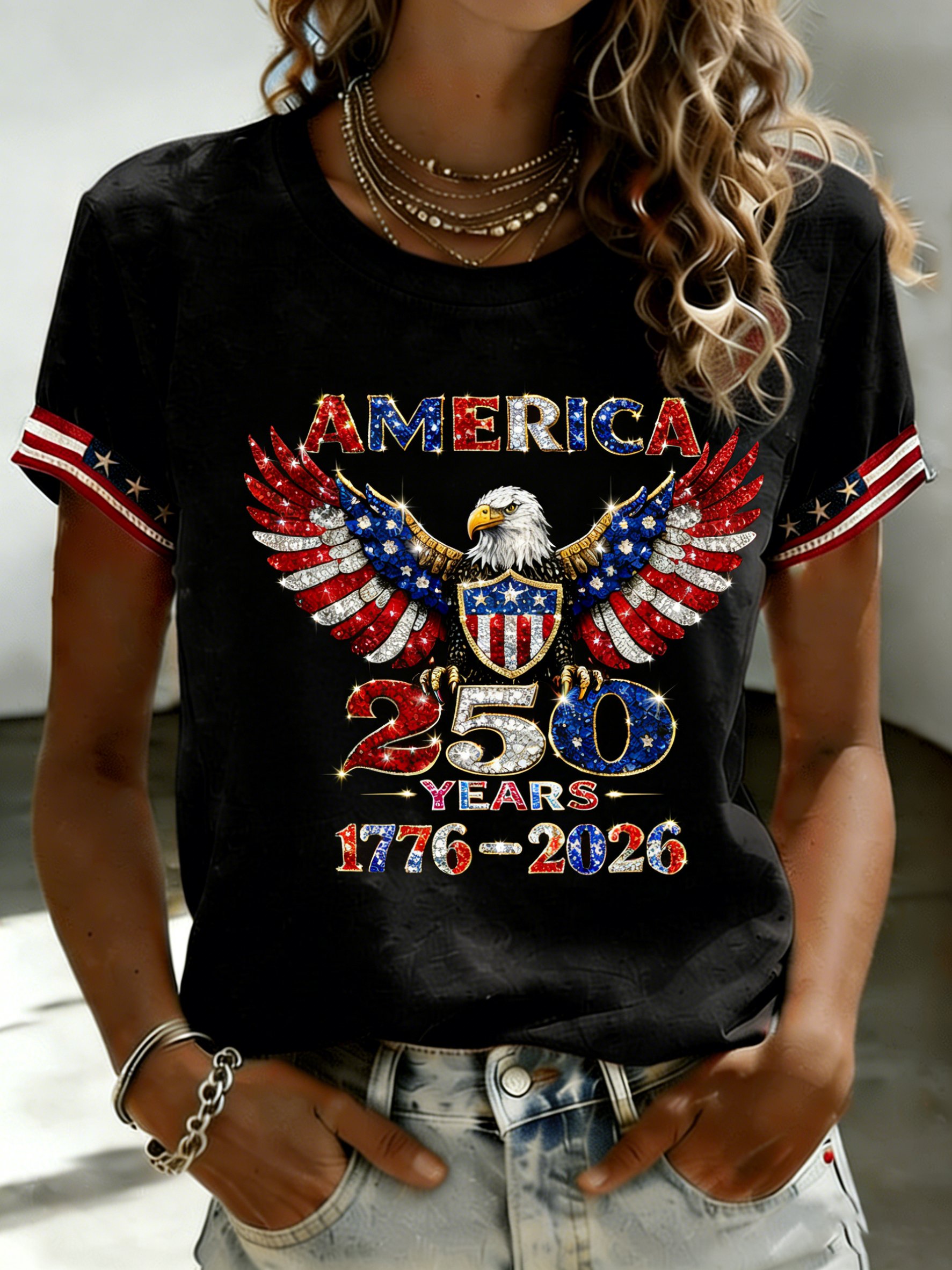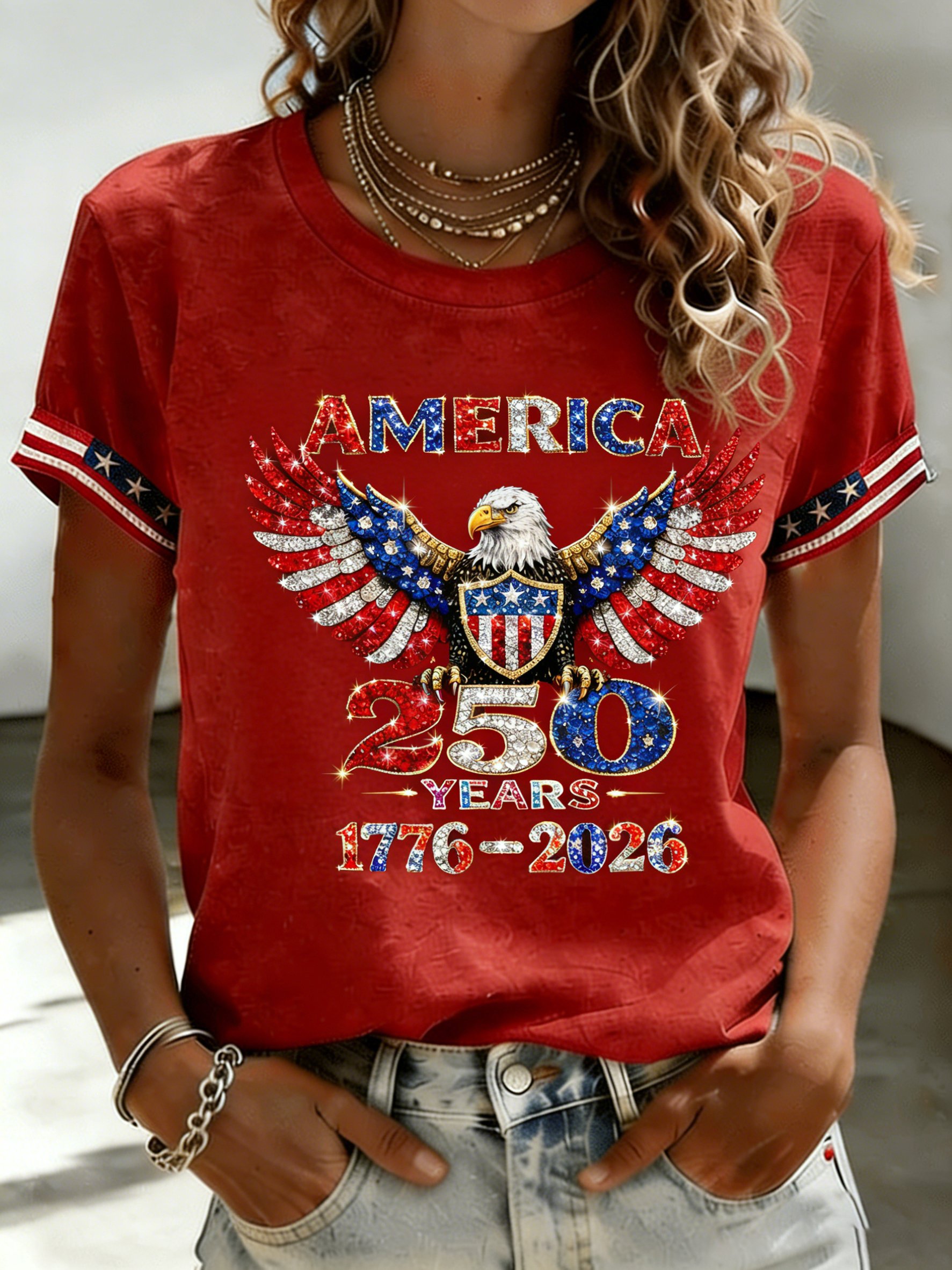 Women's Casual American 250th Anniversary Printed Short-Sleeve T-Shirt